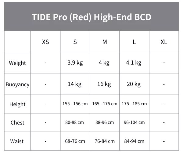 - BCD แบบแจ็กเก็ตที่ใช้ผ้าถุงลม CORDURA 840D ทั้งสองด้าน มีช่องยึดสำหรับมีดพก และระบบถ่วงน้ำหนักภายในทั้งสองฝั่ง สามารถถ่วงน้ำหนัก 4.54 กก.ต่อด้าน ด้านหลังมีถุงถ่วงน้ำหนักคงที่ 2 อัน แต่ละด้านสามารถบรรจุน้ำหนัก 1 กก. สายคาดเอวที่ออกแบบชดเชยความลึก ไม่ว่าความลึกเท่าไหร่ก็สามารถครอบคลุมร่างกายไว้ให้แน่น โครงพยุงหลังใช้วัสดุไนลอนผสมใยแก้ว มีความแข็งแรงสูงไม่ขาดง่าย สอดคล้องกับมาตรฐาน CE ถุงลมผ่านการทดสอบเติมและคายถึง 14,000 ครั้ง