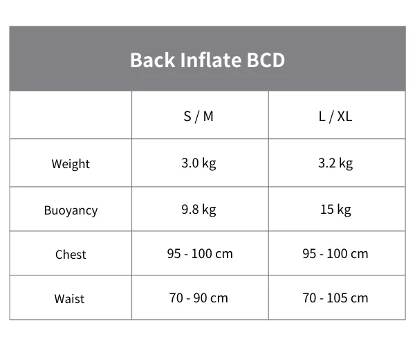 เข็มขัดหน้าอกเป็นโครงสร้างแบบถอดได้ ปรับเปลี่ยนได้ 2 ช่วง สามารถเปลี่ยนช่วงตามความสบายของตนเอง สายรัดเอวรูปคลื่น แขวนอุปกรณ์ดำน้ำได้ วัสดุโครงพยุงหลังมีความทนทาน ทนต่อการสัมผัสรังสีอัลตราไวโอเลตเป็นเวลานาน โครงพยุงหลังมีด้ามจับเพิ่มความสะดวก การออกแบบสายรัดไหล่และแผ่นรองหลังให้หนาขึ้น สวมใส่ได้สบายขึ้น -