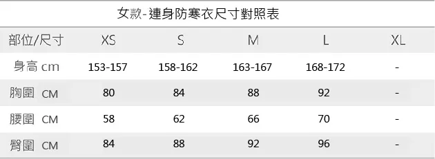 - 配合亞洲人體型,立體剪裁設計,防寒衣厚度3mm,使身體得到充分保護